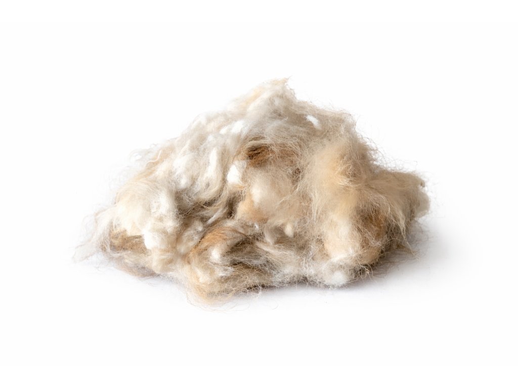 Barva materiálu se může přirozeně lišit podle původu chlupů – od bílé přes světle hnědou až po černou.