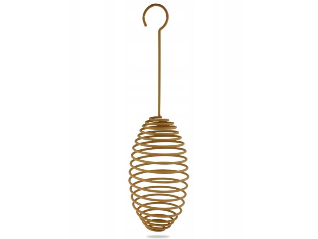 Pevná kovová konstrukce zajistí dlouhou životnost a odolnost vůči počasí. Díky praktickému háčku spirálu snadno zavěsíte na větev, balkon nebo hák. Medový odstín působí přirozeně a nenápadně zapadne do venkovního prostoru.