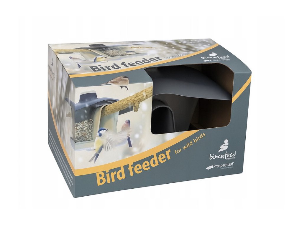 Krmítko je vyrobeno z odolného plastu, díky čemuž je lehké, ale pevné a odolné vůči měnícím se povětrnostním podmínkám. Má dvě komory na krmivo („dvojité“), což umožňuje podávat různé druhy krmiva současně nebo zvýšit počet ptáků, kteří jej používají. Střecha je šikmá, což účinně chrání obsah před deštěm a sněhem. Instalace je jednoduchá - krmítko můžete zavěsit pomocí ocelového lanka nebo ho připevnit k větvi či zábradlí pomocí úvazu.