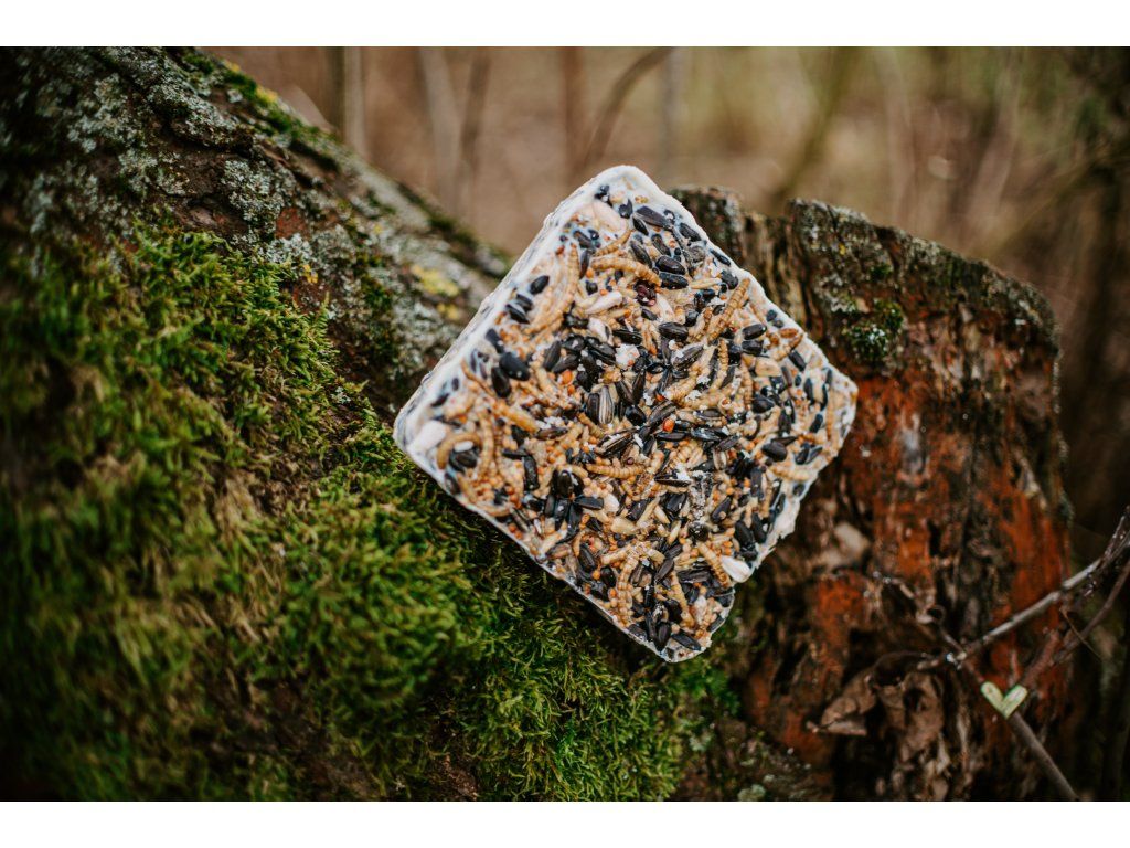 Ručně vyráběný lojový koláč obohacený o sušené moučné červy, které jsou přirozeným zdrojem bílkovin. V kombinaci se směsí semen, obilnin a olejnin poskytuje ptactvu extra výživu a energii. Ideální pro použití v krmítkách typu ANNA.