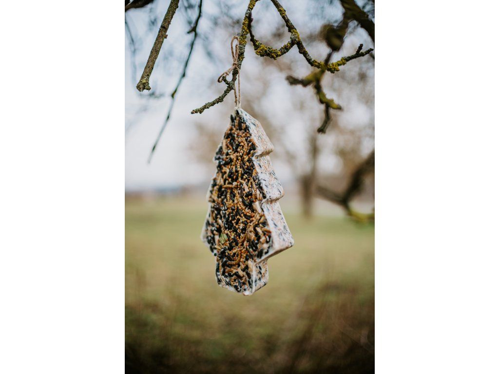Ručně vyráběný lojový stromek obohacený o sušené moučné červy, které jsou přirozeným zdrojem bílkovin. V kombinaci se směsí semen, obilnin a olejnin poskytuje ptactvu extra výživu a energii. Ideální jako závěsná pochoutka pro zahradu i balkon.