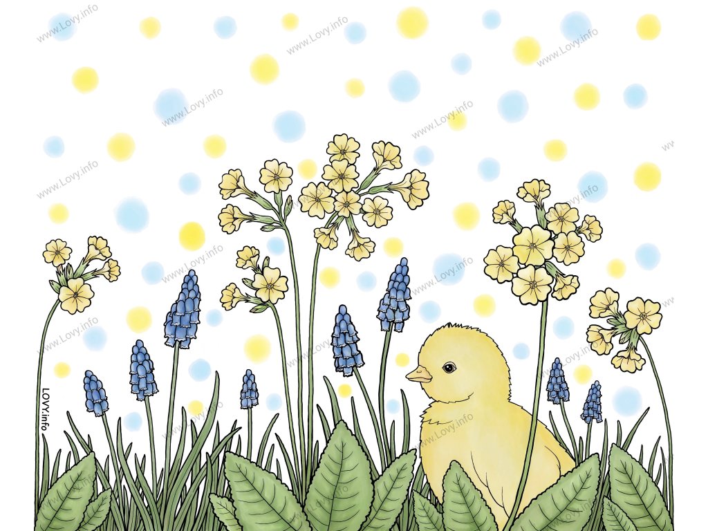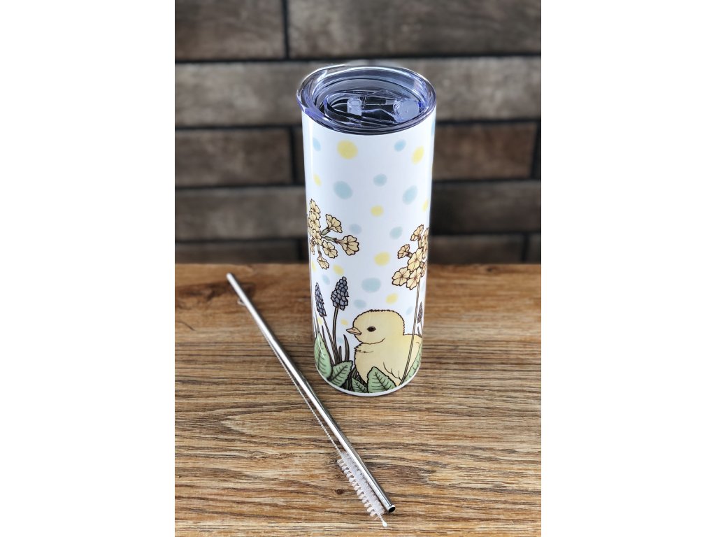 Termohrnek „Jarní kuřátko“ – modřence a petrklíče