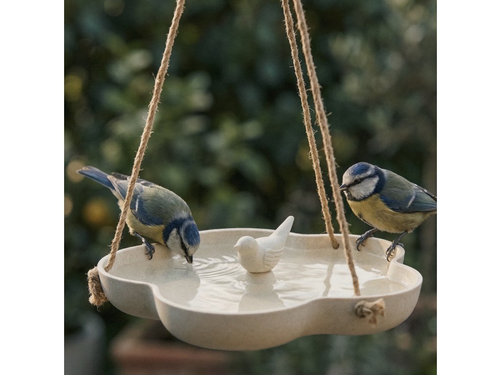 Závěsné pítko pro ptáčky z přírodních materiálů je vhodné na balkon i do zahrady. Kombinace bambusu a juty v jemné béžové barvě působí lehce a přirozeně. Květovaný tvar s 3D prvky dodá prostoru zajímavý detail a díky možnosti zavěšení se snadno umístí tam, kde chcete vytvořit příjemnou atmosféru.